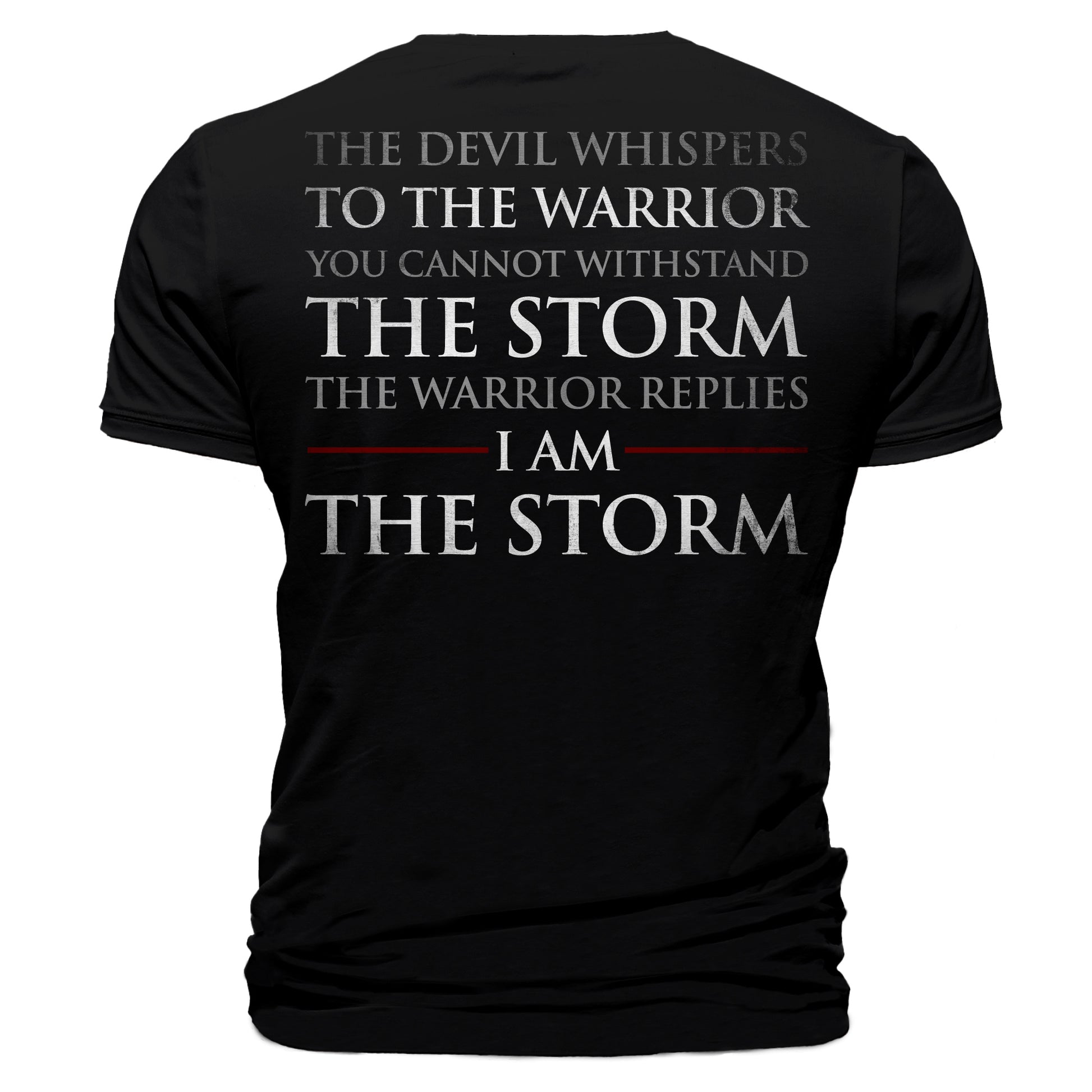 This design captures the resolve of a warrior who does not retreat when pressure rises. The words reflect an inner dialogue where fear is confronted and answered with strength, reminding us that resilience is forged through trials. Inspired by the warrior mindset found throughout Scripture, this piece speaks to those who stand firm, unmoved, and unbroken when storms come. Available as a t-shirt, long sleeve shirt, or hoodie.