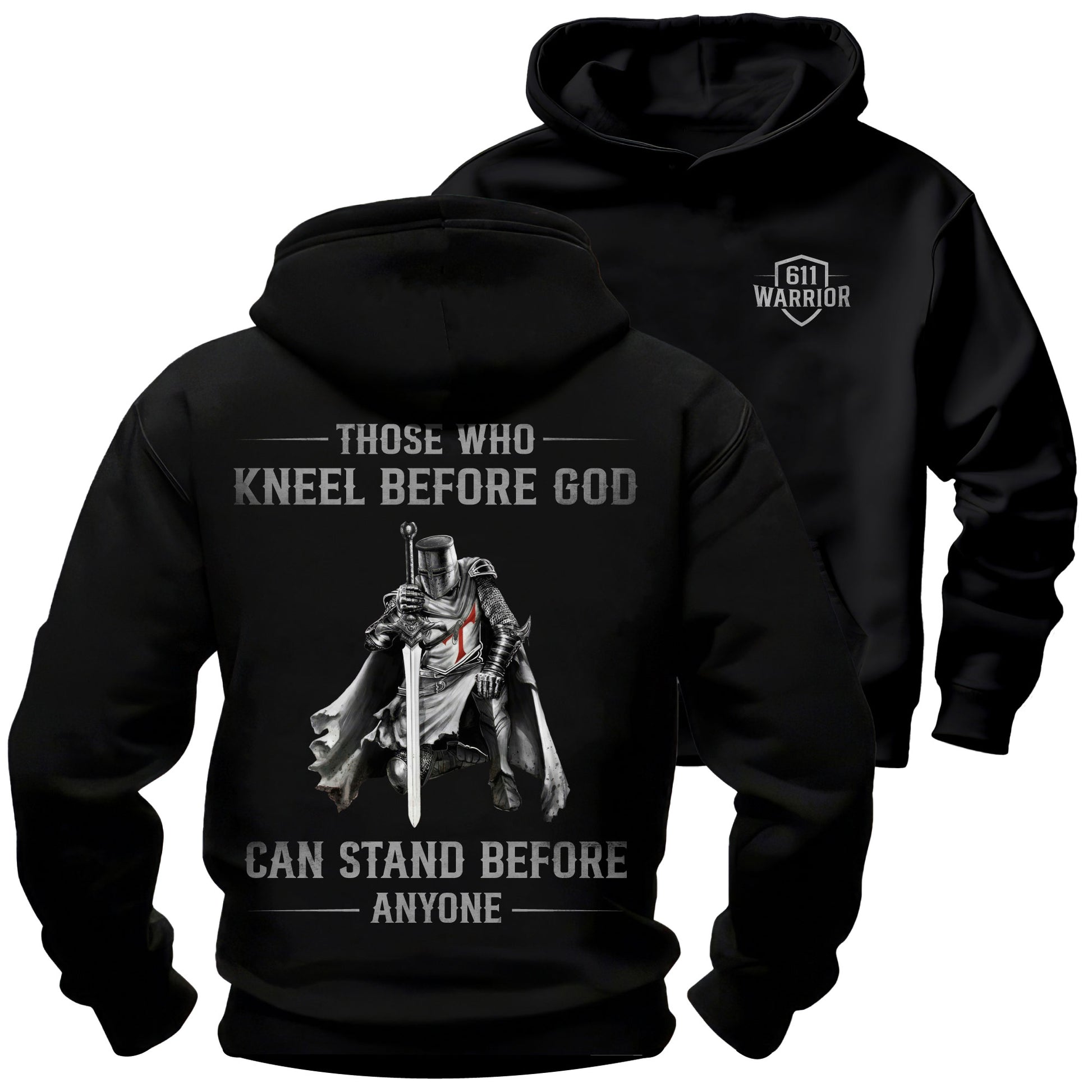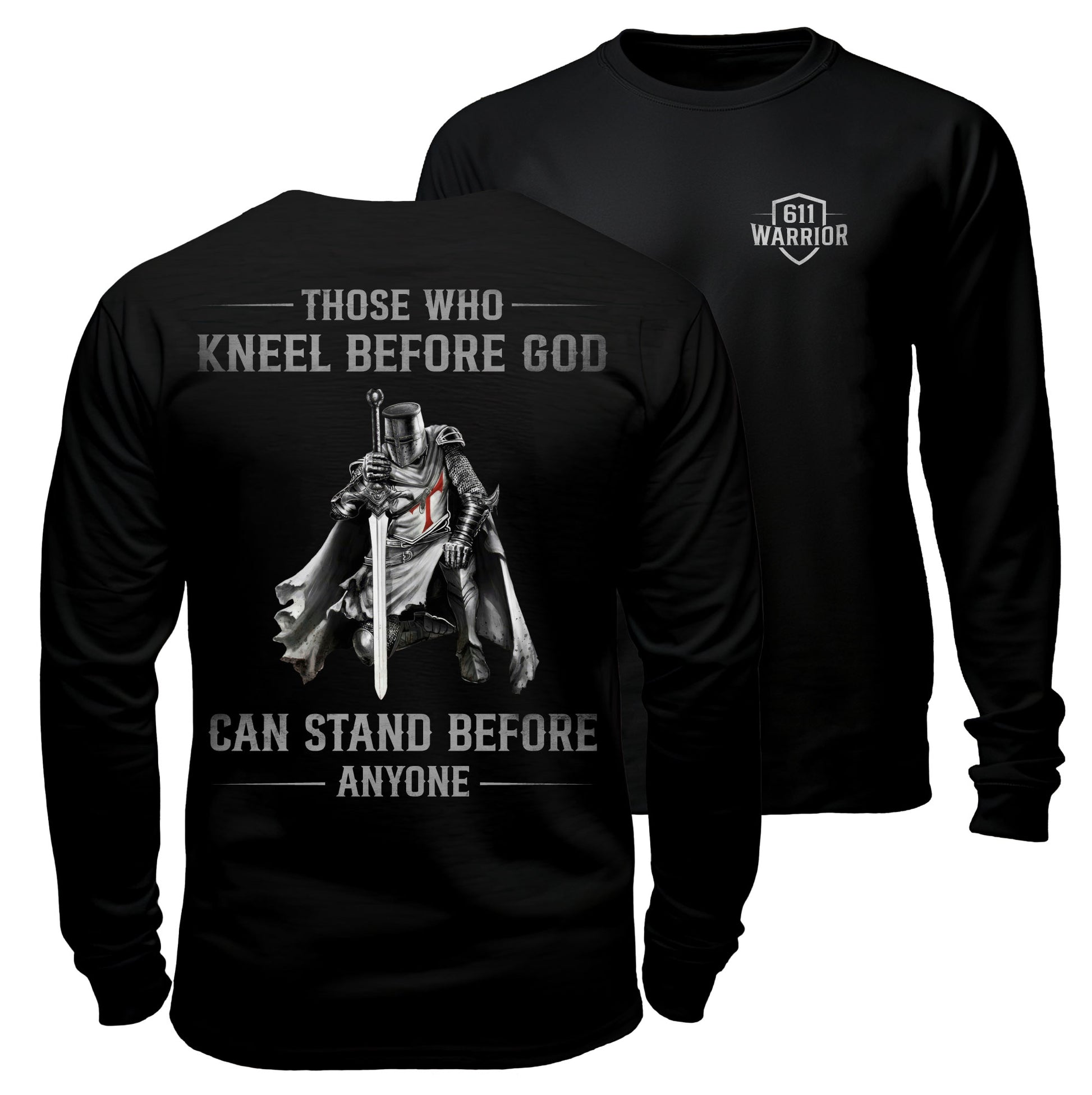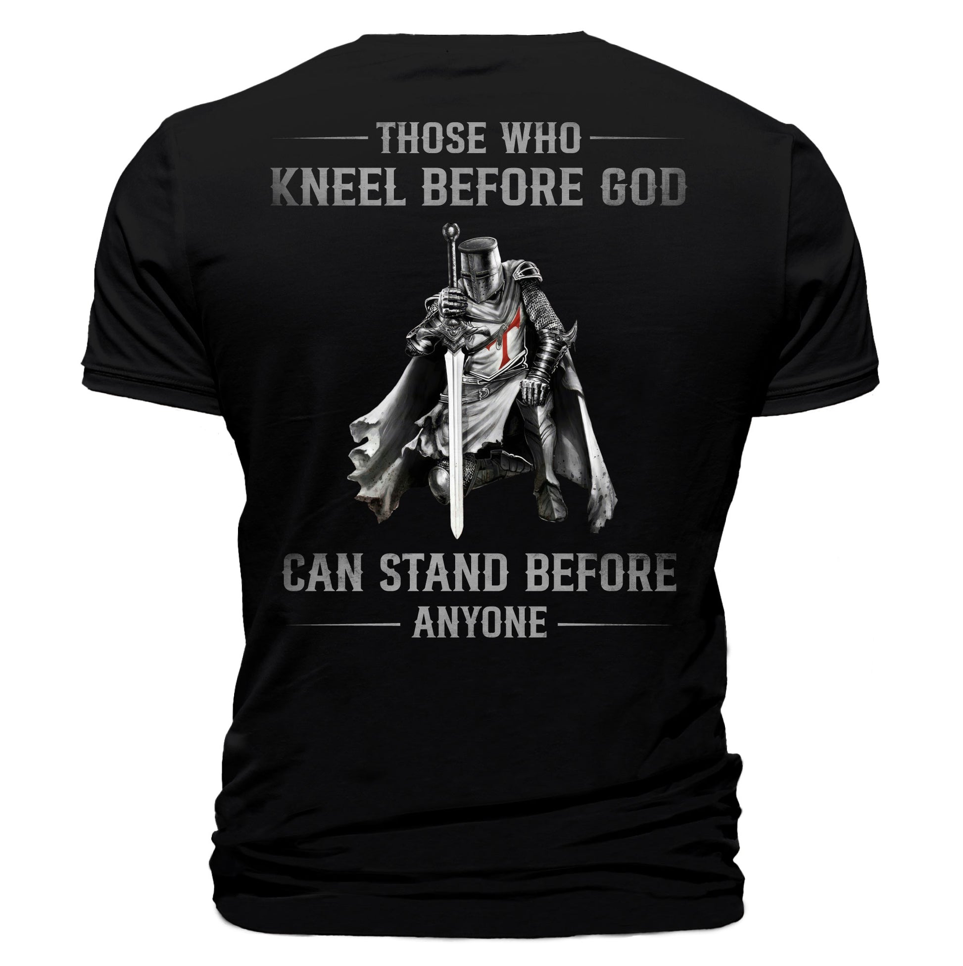 This bold design features a kneeling warrior knight, framing the truth that real strength starts on our knees and stands tall against any challenge. This graphic tee is built for warriors who live with conviction and courage. Available as a t-shirt, long sleeve shirt, or hoodie.