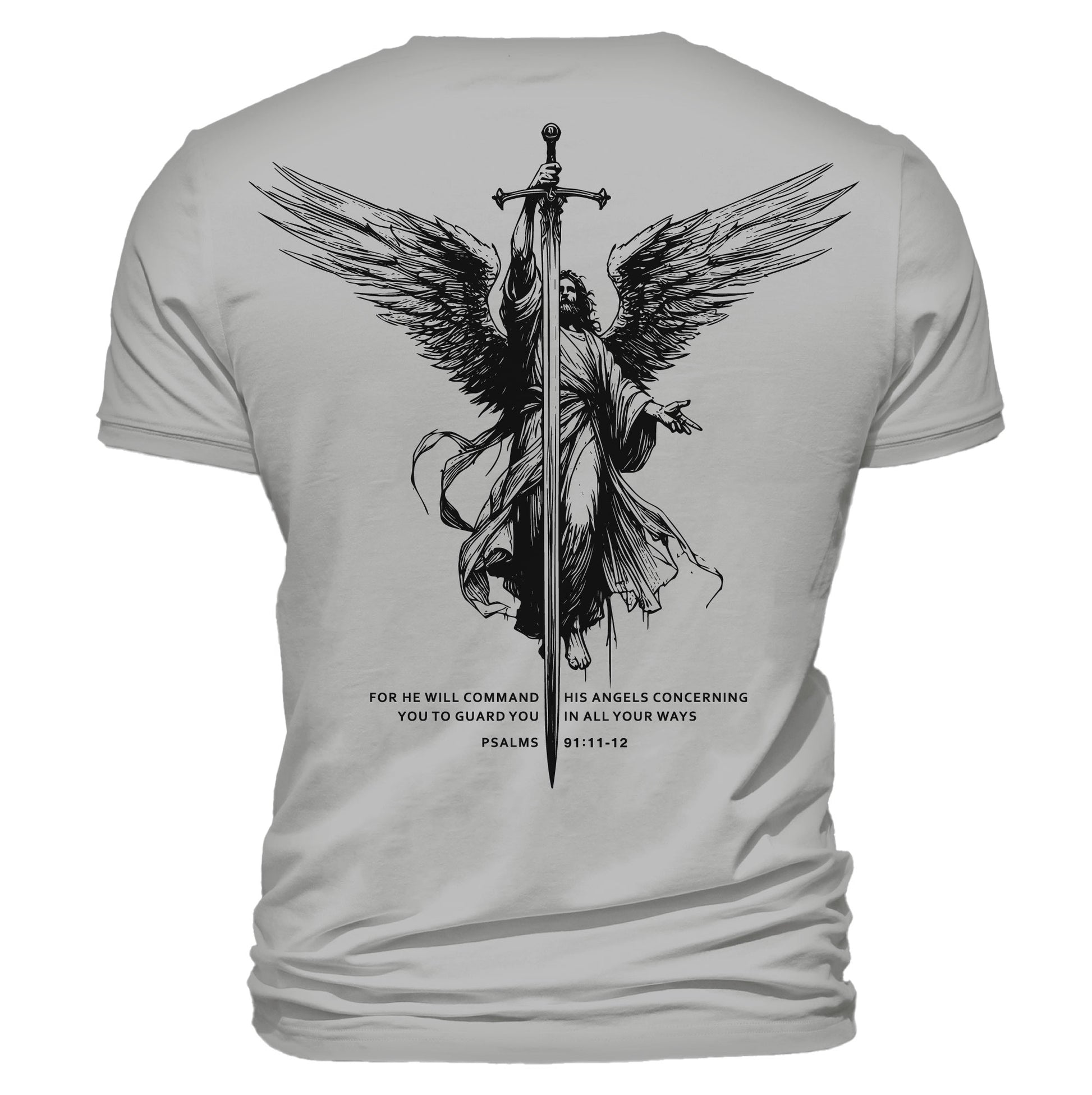 A striking depiction of the archangel standing guard, sword raised in divine strength. Inspired by Psalm 91:11-12, this design reminds us that we are never alone—heaven’s watch stands ready to protect those who walk in faith and courage. A bold statement of trust, purpose, and the unseen battle fought on our behalf.
