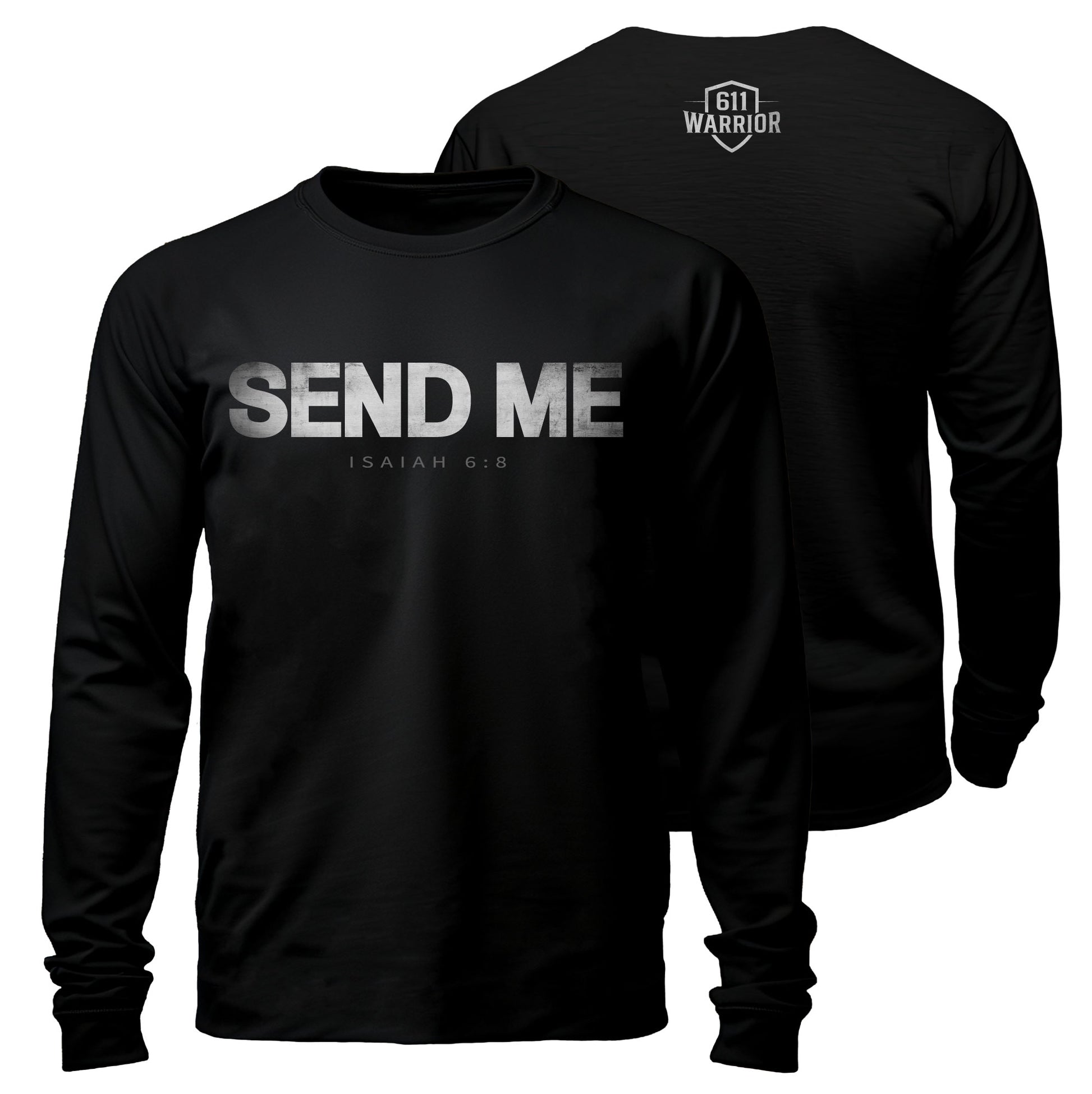 A minimalist yet powerful statement of purpose. Featuring bold “SEND ME” lettering with Isaiah 6:8 beneath, this design honors those who step forward when others stand back — a tribute to courage, faith, and readiness to serve.