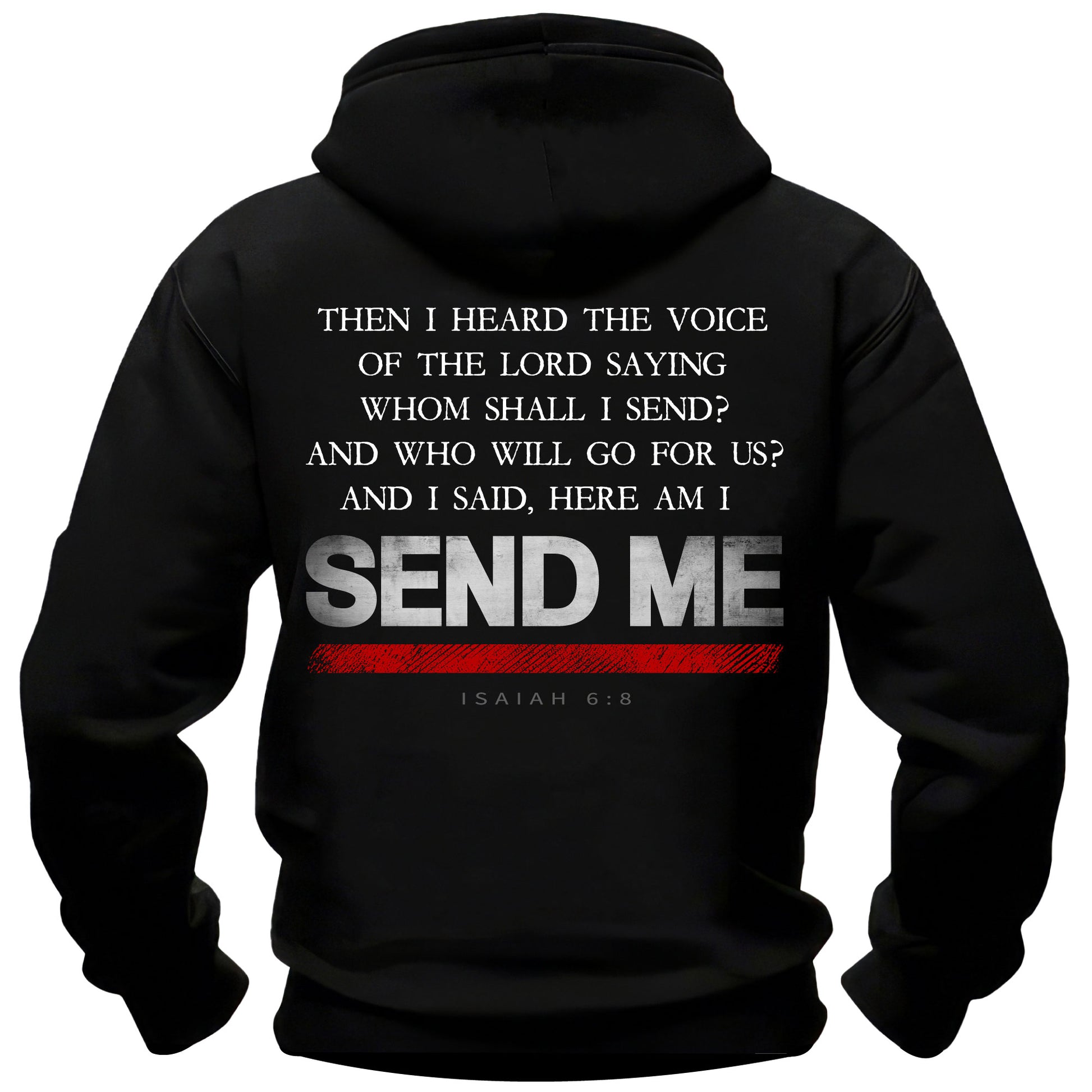 Built for those who answer the call when others stand back, this Send Me Thin Red Line edition embodies courage and selfless service. The thin red line accent honors firefighters and who chose to stand up and step forward without hesitation. Inspired by Isaiah 6:8, it’s a statement of readiness and purpose — for those who live to serve and protect. Available as a t-shirt, long sleeve shirt, or hoodie.
